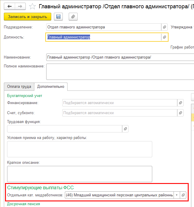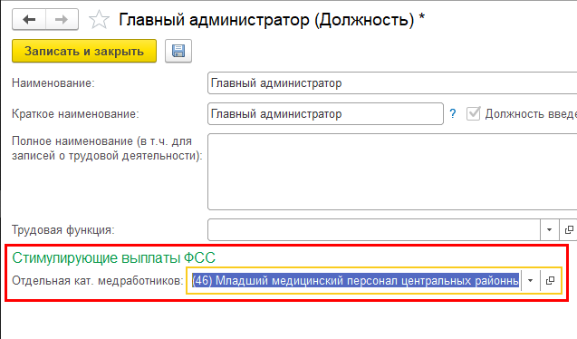 После его установки в карточках должностей и позиций штатного расписания появляется поле "Отдельная кат. медработников".