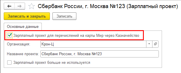 В зарплатном проекте можно установить признак, что он предназначен для перечислений на карты Мир.