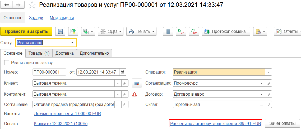 Реализация товаров услуг