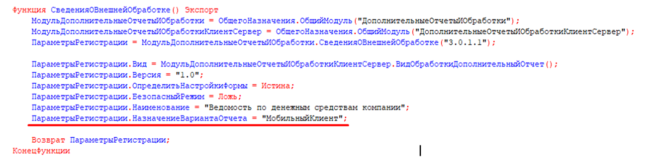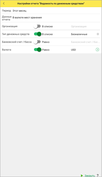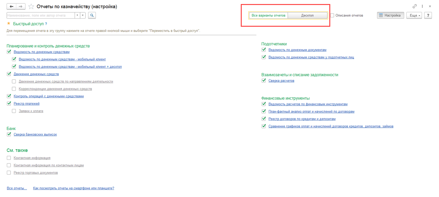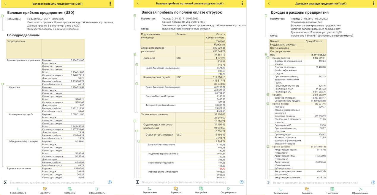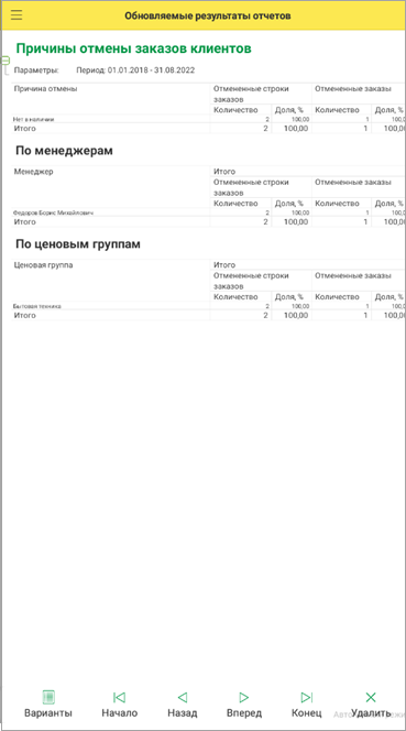 В системе настроены предопределенные варианты отчетов для мобильного клиента, такие как: