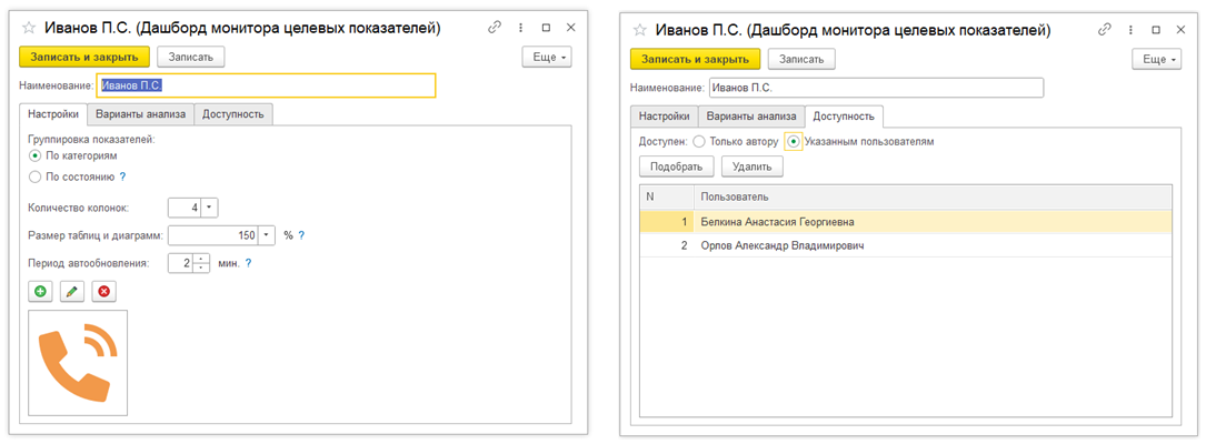 Для того чтобы в мобильном клиенте автоматически открывался Монитор целевых показателей, необходимо в карточке элемента справочника Пользователи (раздел НСИ и администрирование – Администрирование – Настройки пользователей и прав - Пользователи) в контекстном меню выбрать пункт Настройки открытия форм при начале работы программы. Далее в карточке элемента справочника Настройки открытия форм при начале работы программы с выбранным значением Монитор целевых показателей в поле Открываемая форма установить флаг Открывать по умолчанию.