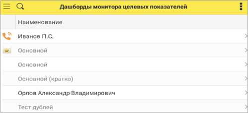 При открытии отчета МЦП в мобильном клиенте пользователю сначала необходимо выбрать дашборд из списка.