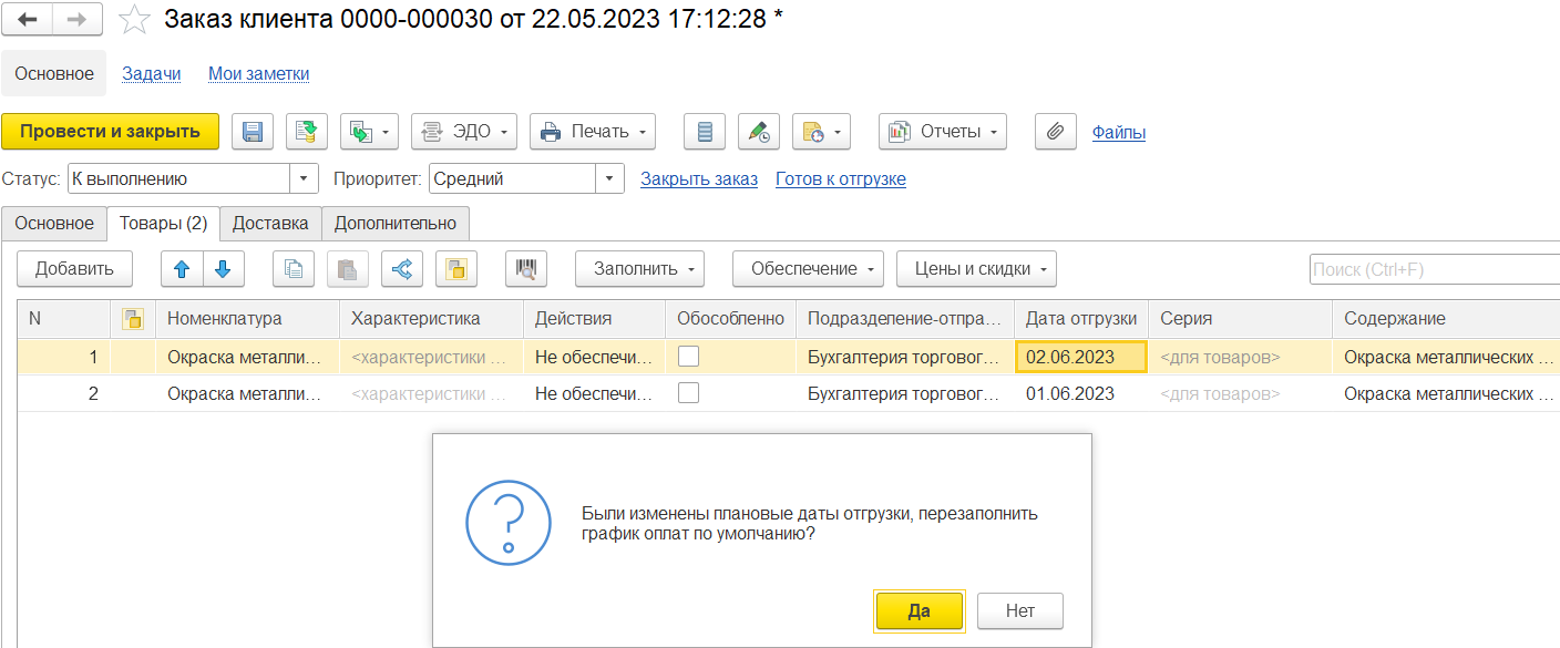 После успешного согласования статус заказа автоматически устанавливается в значение К выполнению.