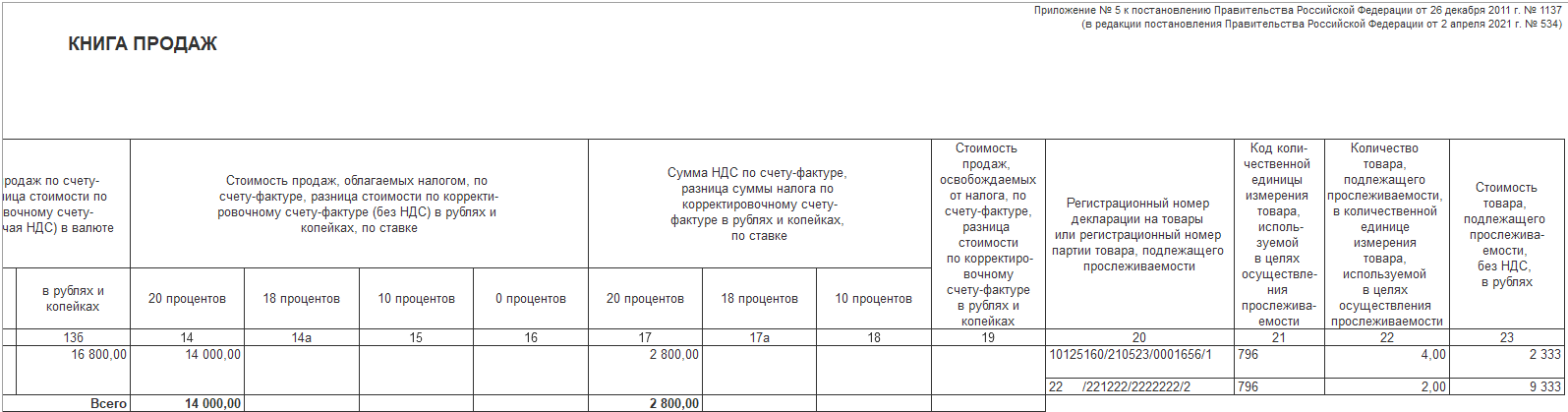 Учет сведений о прослеживаемости в составе выполненных работ поддержан в следующих расходных накладных: