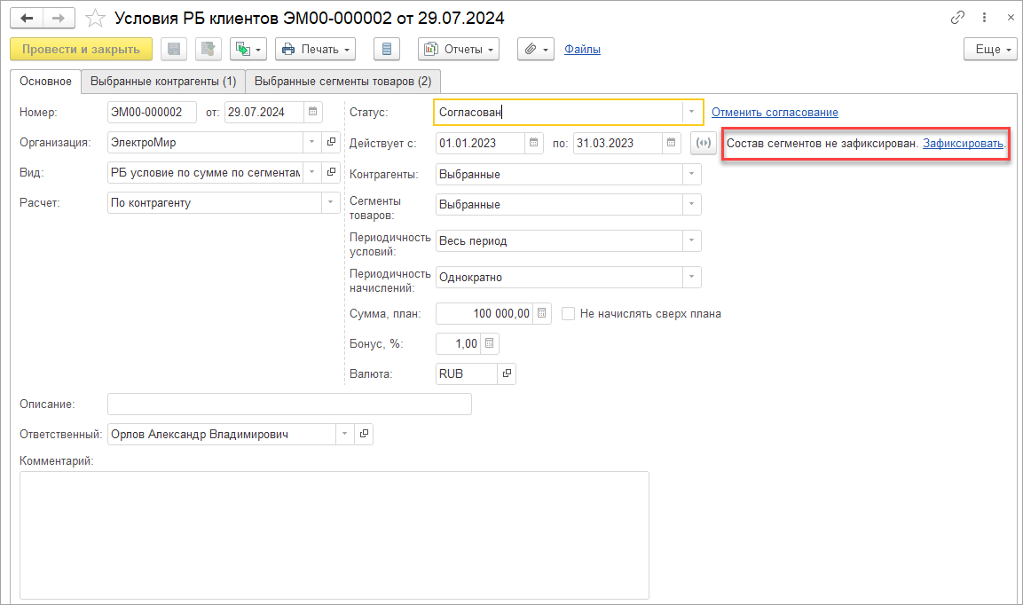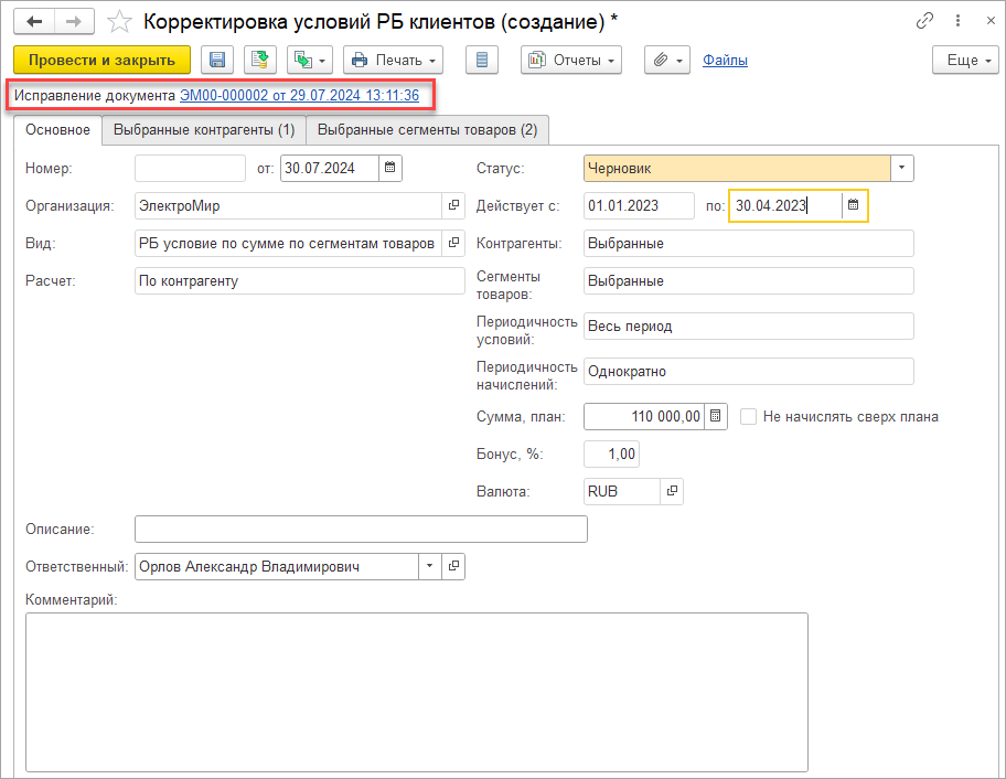 При необходимости, можно откорректировать контактные данные менеджера на закладке Дополнительно.