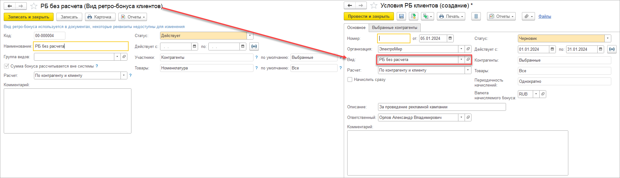 В документах, поддерживающих указание сведений о номерах ГТД/РНПТ, введено ограничение на указание значений справочника по типу в зависимости от учетных настроек номенклатуры типа «Товар» и «Многооборотная тара»: