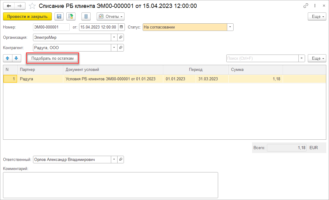 Для возвратов возможно интерактивное формирование либо документа Корректировка реализации, либо Возврат товаров от покупателя. Дата документа – дата приема возврата складом или сортировочным центром. По частичным возвратам реализация признается в полном объеме, а на возвращаемые товары создается документ возврата (или корректировки).