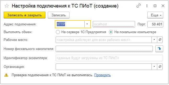 режиме) можно настроить подключение для кассы к ТС ПИоТ.