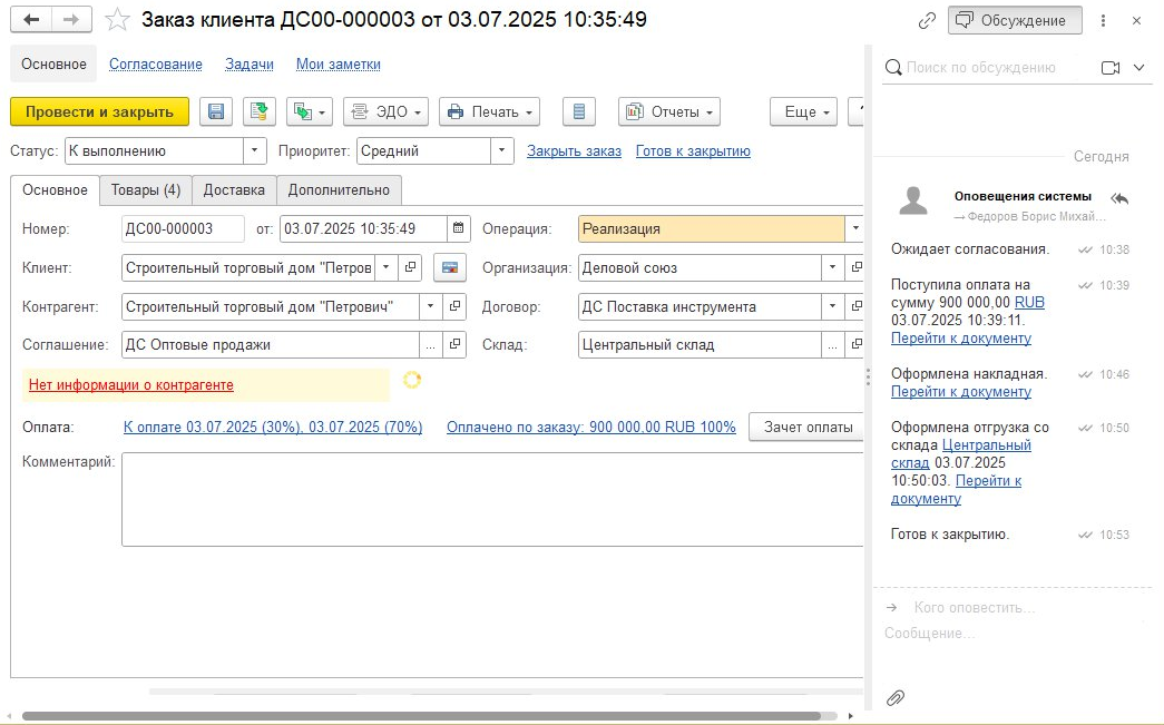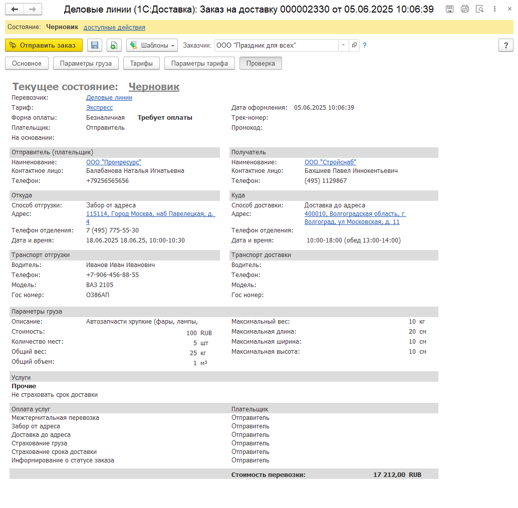 В итоговую информацию о доставке добавлен блок с выводом данных о водителе и транспорте доставки.