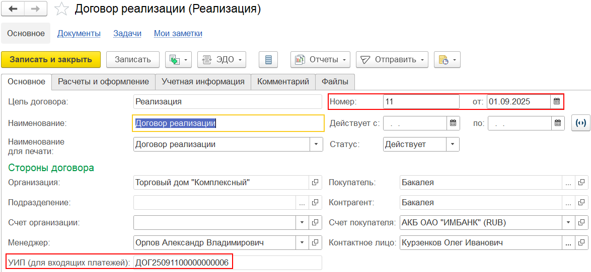 Если в составе данных электронного документа с типом «Счет на оплату» передан идентификатор платежа, его значение заполняется в поле УИП при создании учетного документа по данным ЭД.