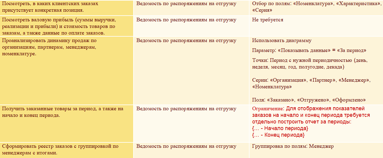 Отчеты для анализа распоряжений на отгрузку и возврат позволяют: