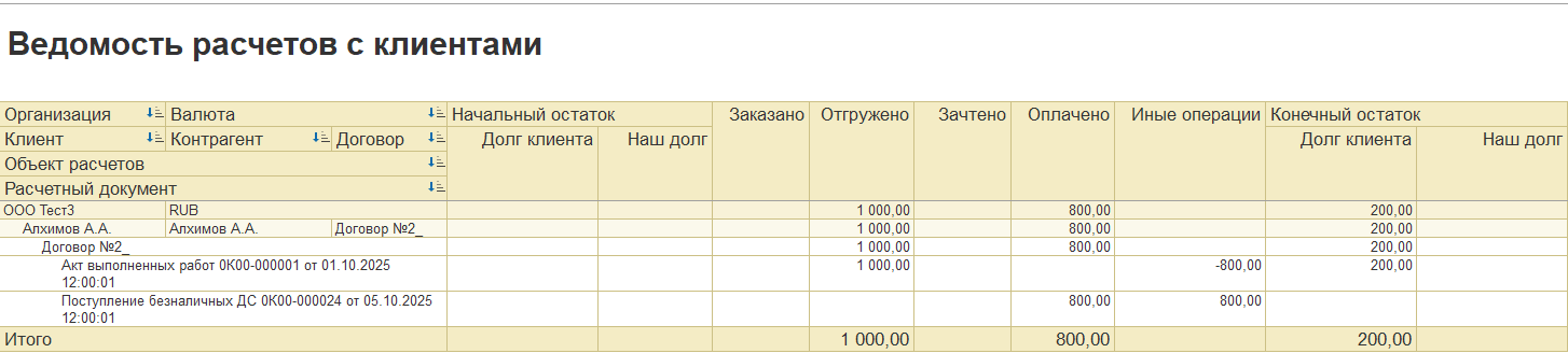 Показатели расчетов с клиентами: