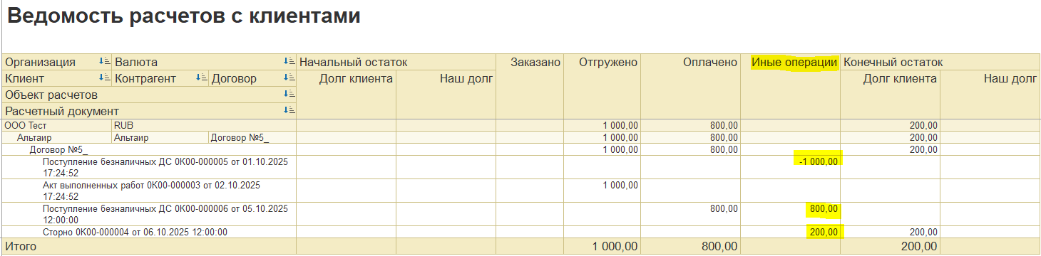 Особенности зачета развернутого сальдо (пример сторно платежа постоплаты):