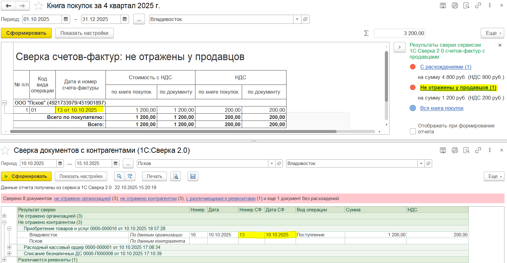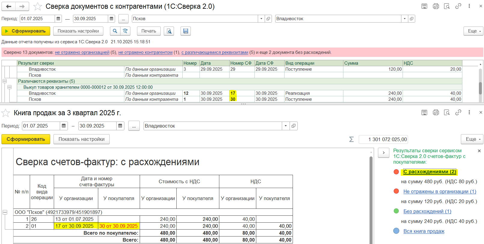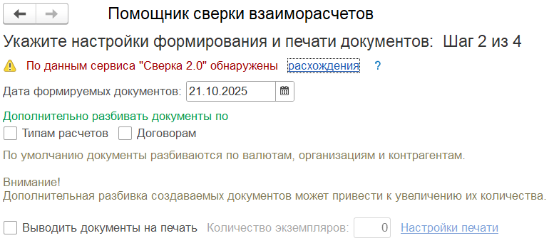с сообщением о наличии расхождений.