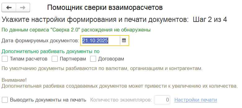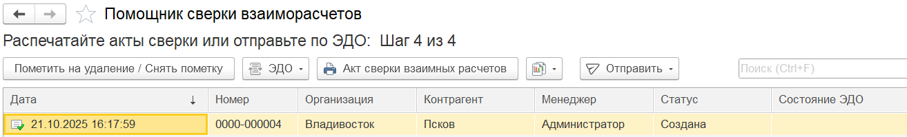 На последнем этапе отображается информация о том, какие документы будут созданы.