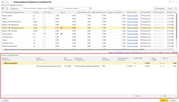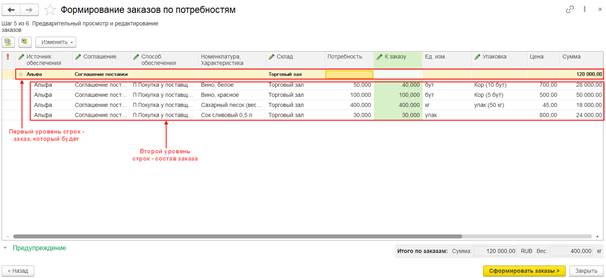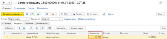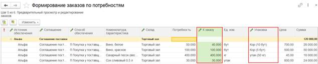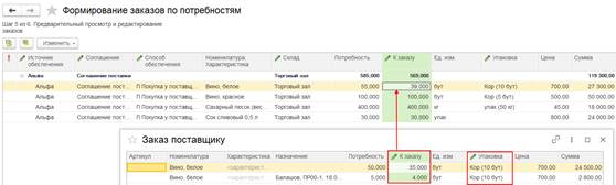 Для редактирования заказа открывается мастер, в котором предусмотрено формирование самого заказ. Доступность реквизитов на изменение не ограничивается.