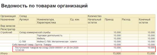 Общее состояние документа Реализация товаров и услуг показывается при группировке по документам.