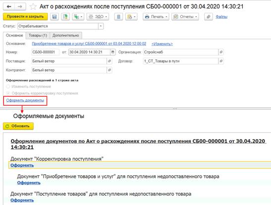Для таких сценариев предусмотрена возможность оформления раздельной закупки товаров двумя документами по схемам «Товары в пути» и «Неотфактурованные поставки».