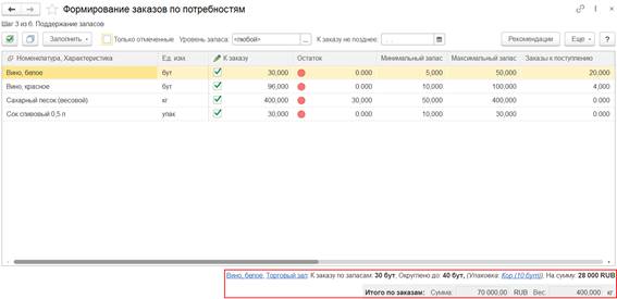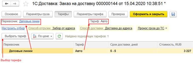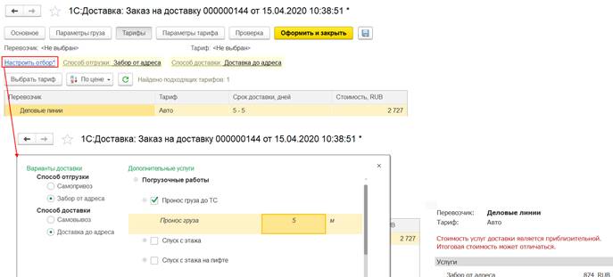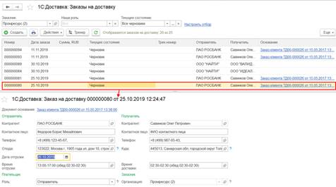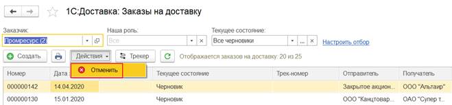 Также можно отобрать список необходимых заказов, используя дополнительные отборы, например, по номеру заказа, документу основания, перевозчику и др.