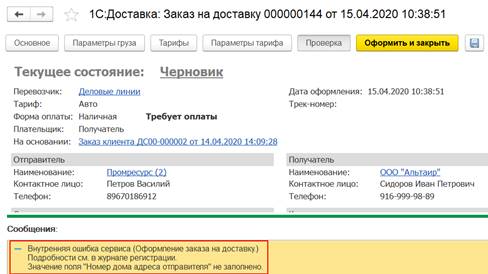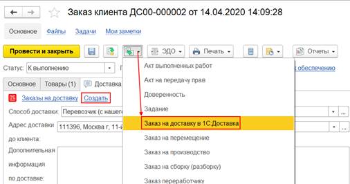 Добавлен новый механизм для работы с сервисом 1С:Доставка.
