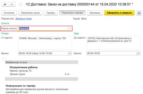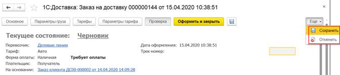 После редактирования заказ можно сохранить или оформить с последующей отправкой грузоперевозчикам.