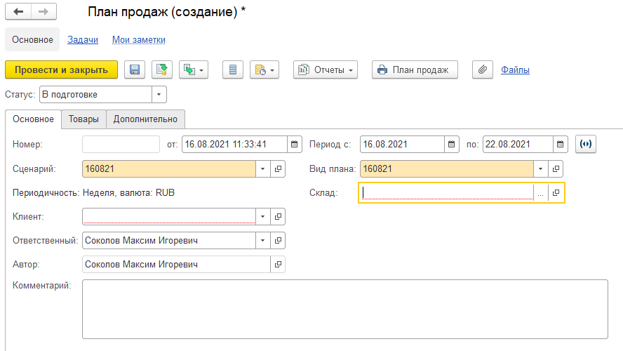 При создании сценария, кроме наименования и периодичности, требуется решить, в каком положении оставить переключатель «Планирование продаж»: