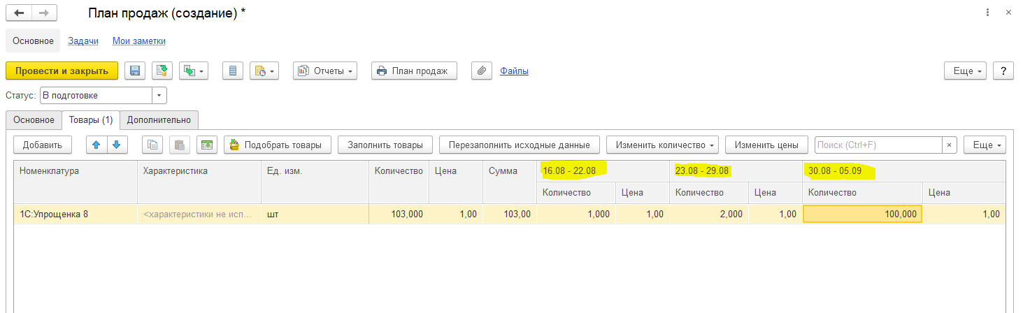 Это позволит ввести в табличной части товаров прогноз на несколько дат.