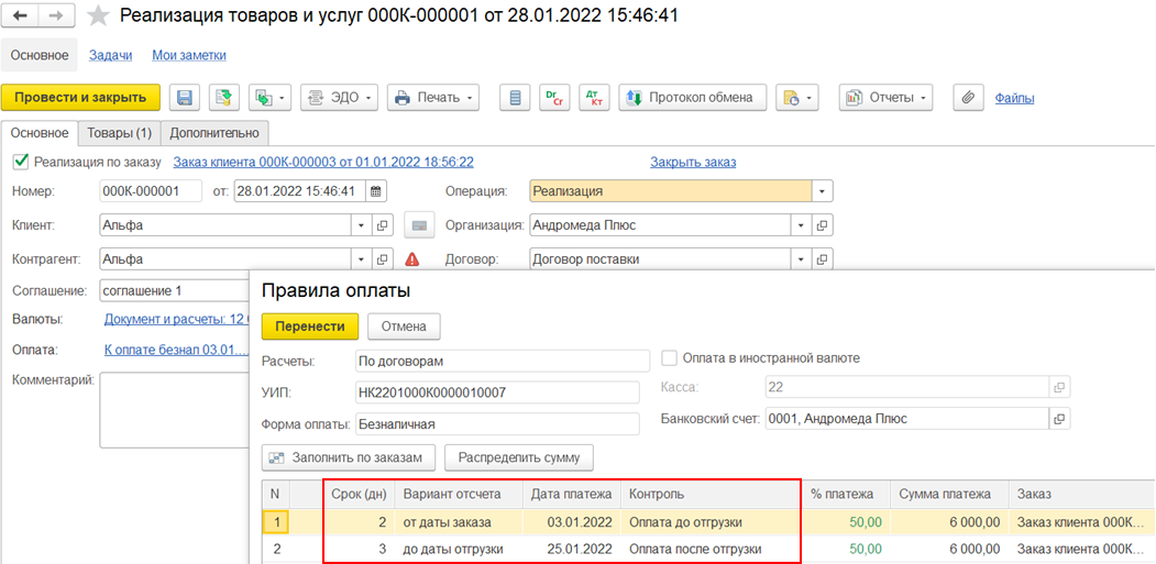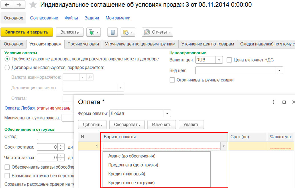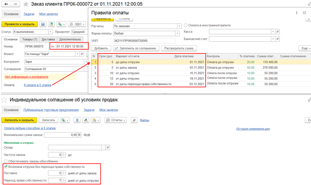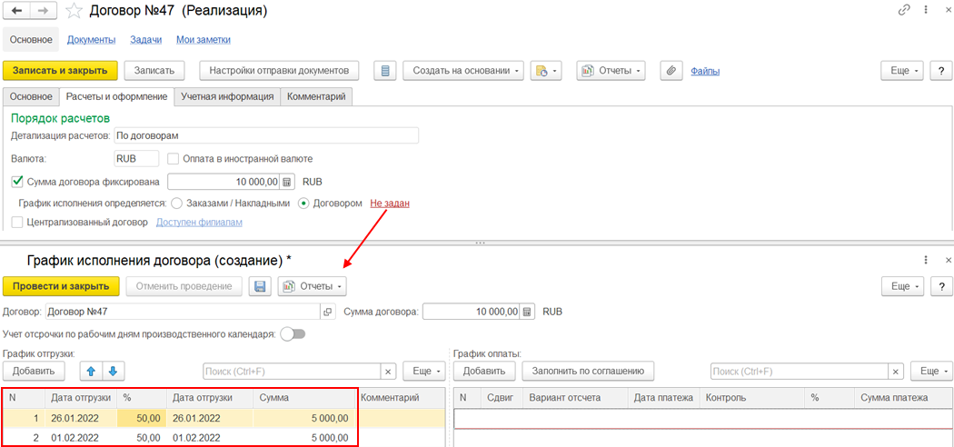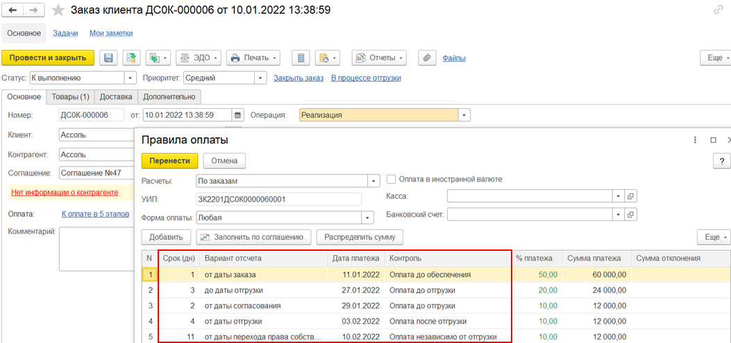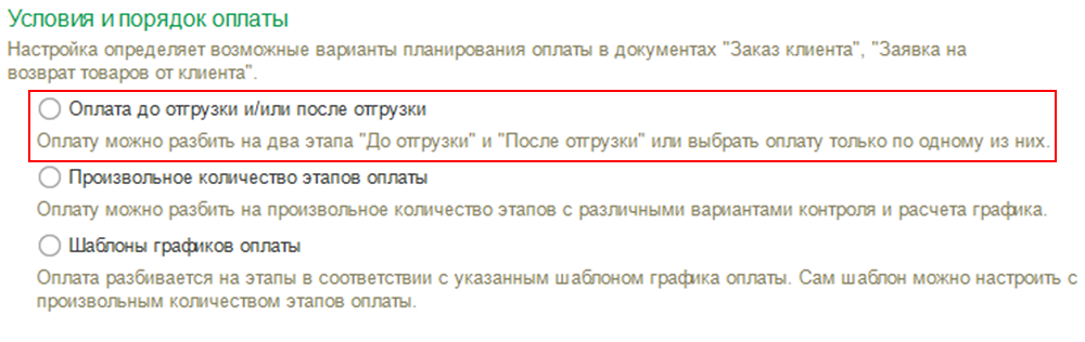 Для графиков оплат от клиентов заполняются варианты отсчета: