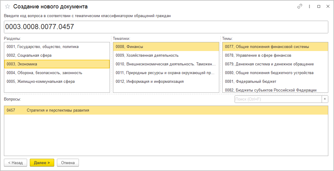 новой версии программы обновлен классификатор обращений граждан для выгрузки на