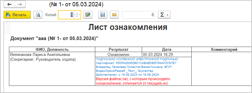 ■ Версии файлов ознакомления отслеживались только для документов, теперь отслеживаются и для мероприятий.