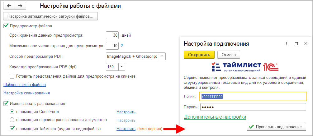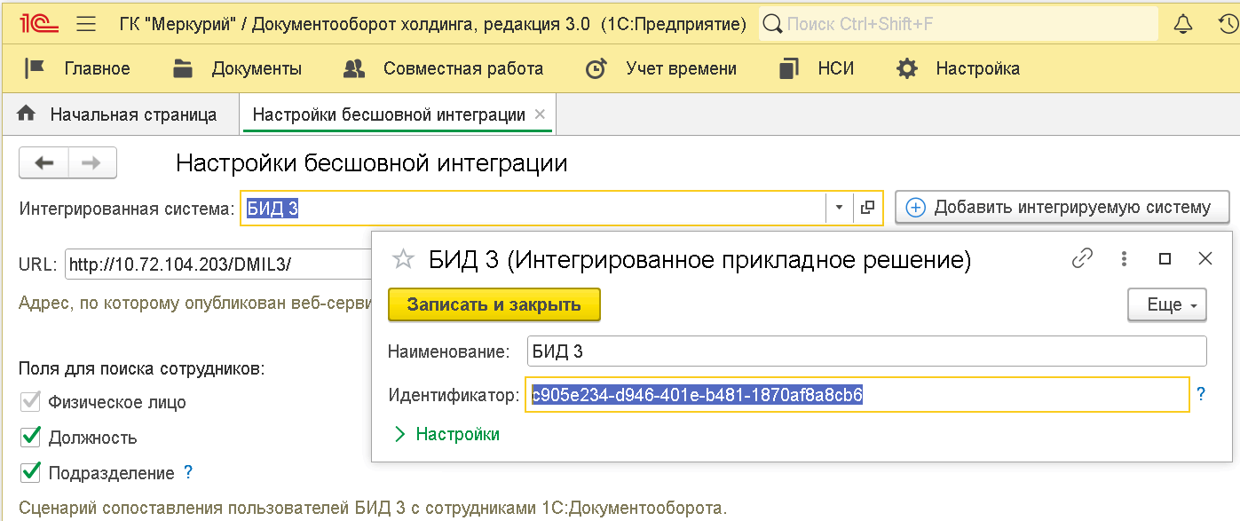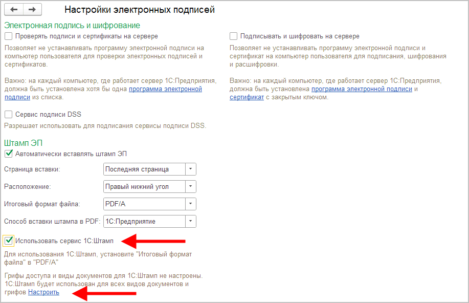 2. Установить настройку Использовать сервис 1С:Штамп.
