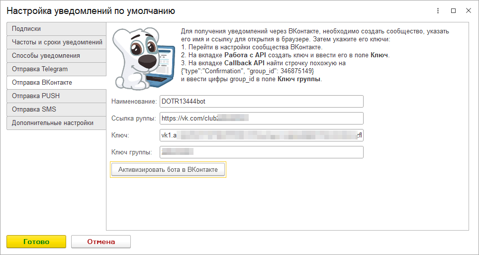 2.3. Получение уведомлений через Telegram и ВКонтакте
