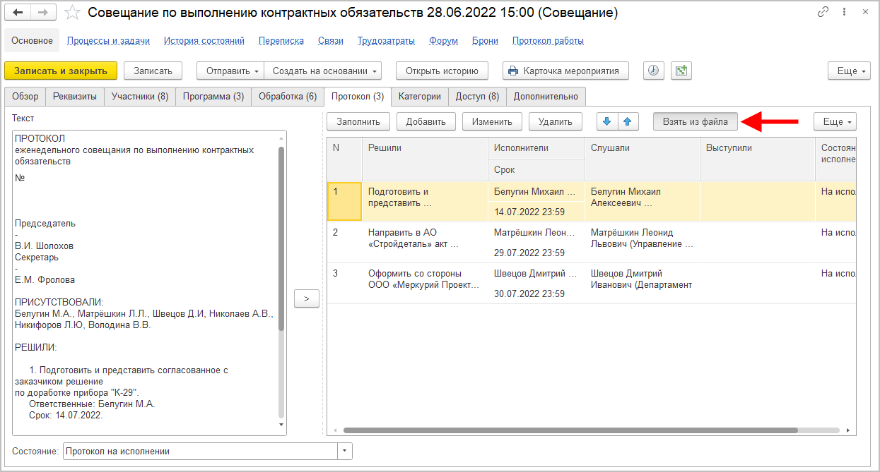 ■ Пункт протокола мероприятия;