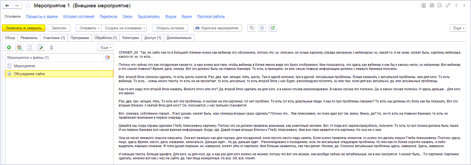 ■ После проведения мероприятия не менялся статус для материалов (не появился «С материалами ознакомились»).