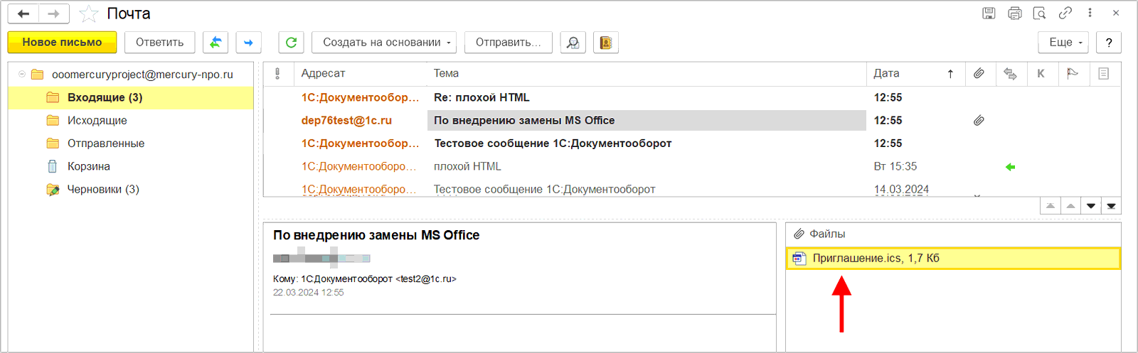 ■ Входящее письмо;