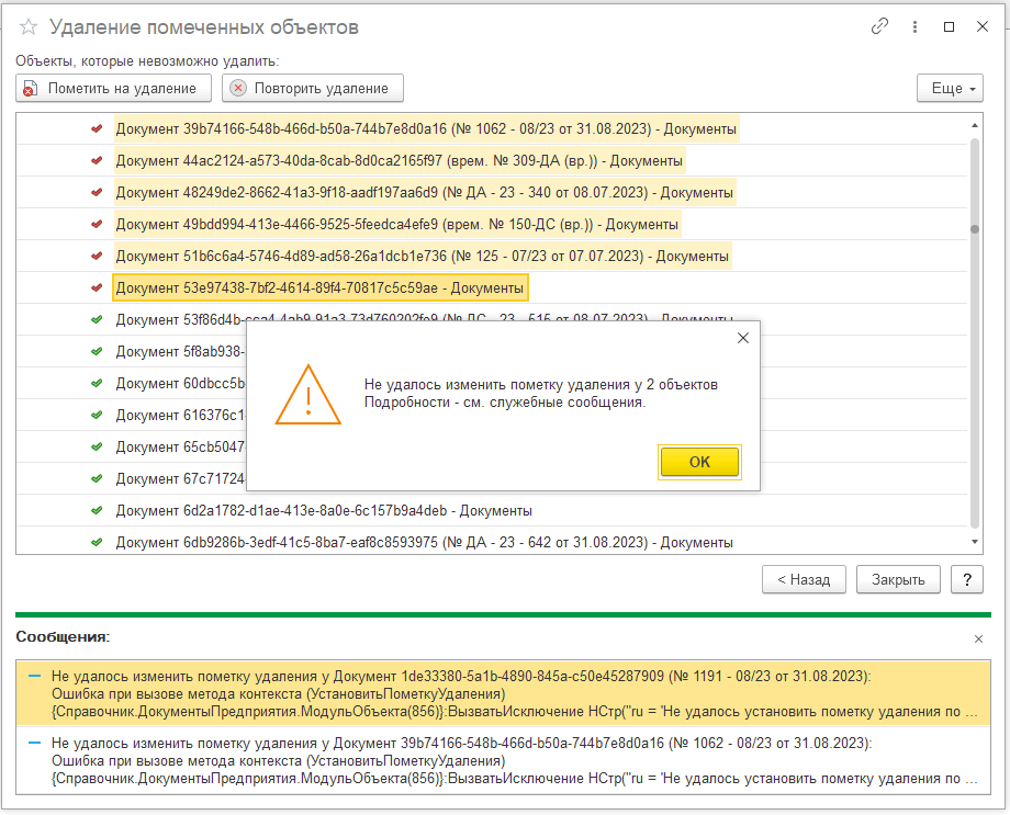 ■ При пометке документа на удаление он возвращался в список «Мои документы».