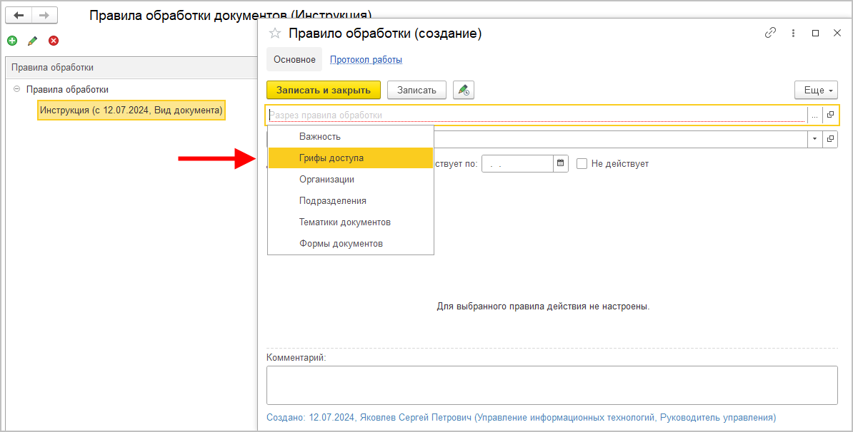 В новой версии программы можно настроить правила обработки документов и мероприятий по следующим разрезам: