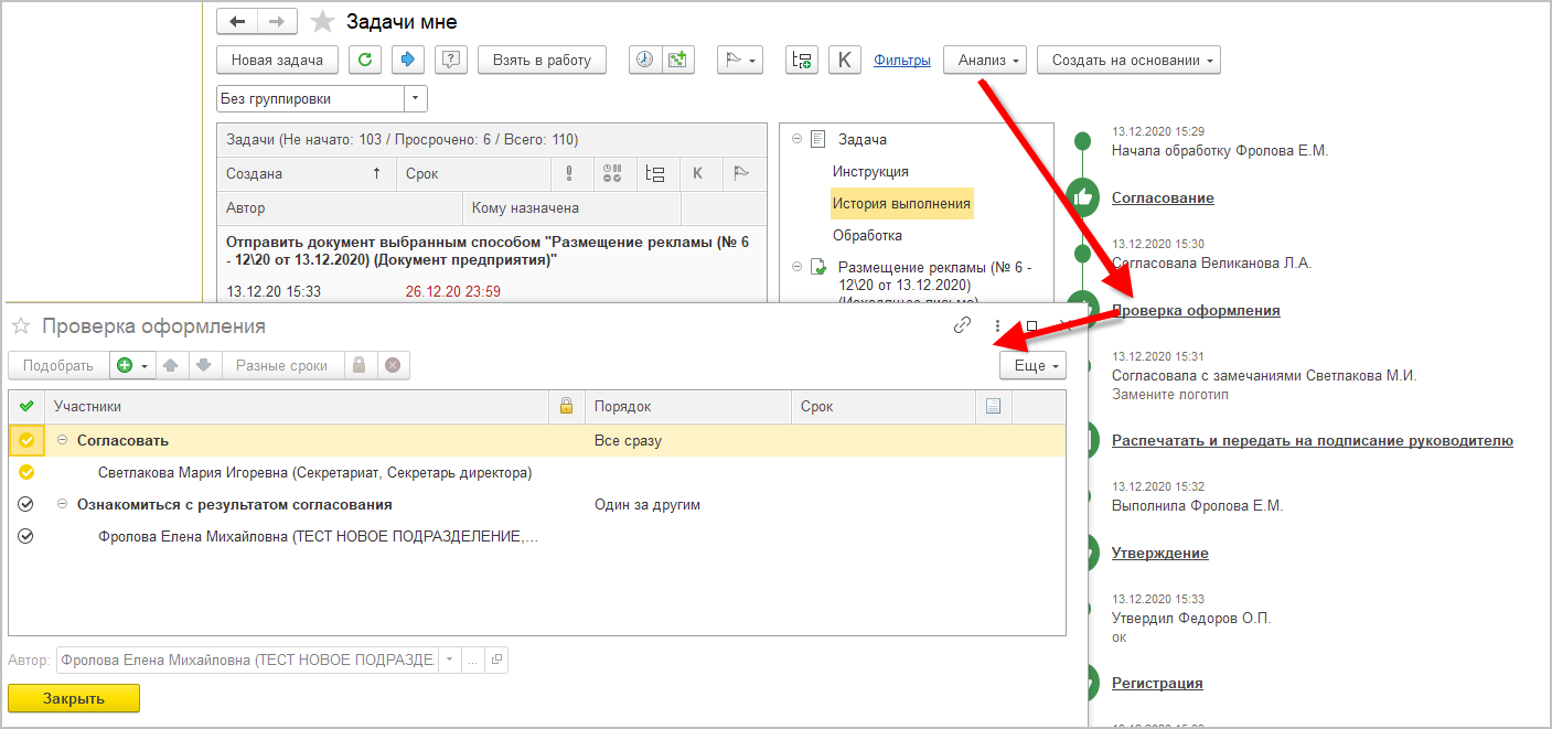 ■ Если в согласовании участвовало два сотрудника и далее они выполнили задачи, то если вернули на второй цикл согласования только одному сотруднику, у второго полностью исчезала задача, и в отчете отображался только один исполнитель.