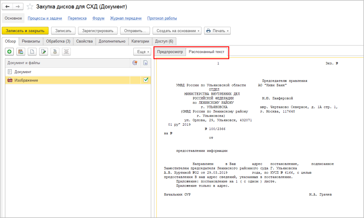 Также визуализация документа ЭДО будет доступна в карточках задач по документу.