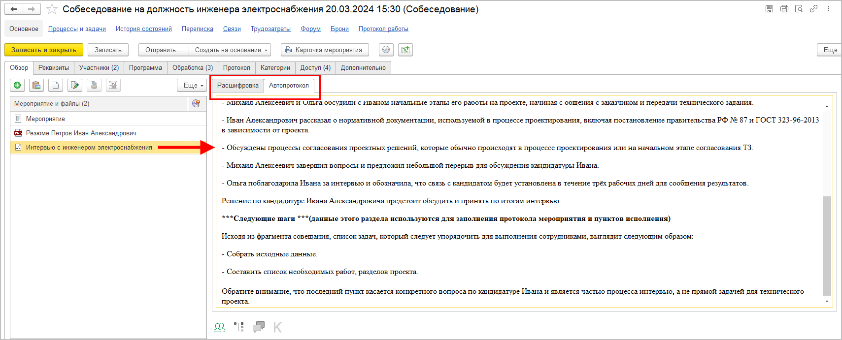 ■ Отсутствие автосортировки пунктов протокола.