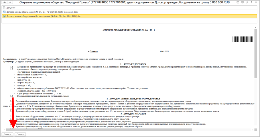 После выполнения данной команды программа предложит подобрать документ 1С:Документооборота для добавления в пакет. После выбора документа образуется пакет ЭДО, который можно подписать и отправить контрагенту.