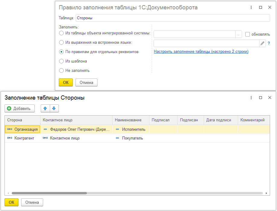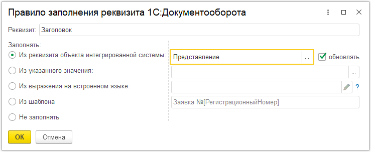 При автоматическом создании настраивается правило заполнения реквизитов создаваемого документа, аналогично таковым при бесшовной интеграции 1С:Документооборот с другими системами «1С».