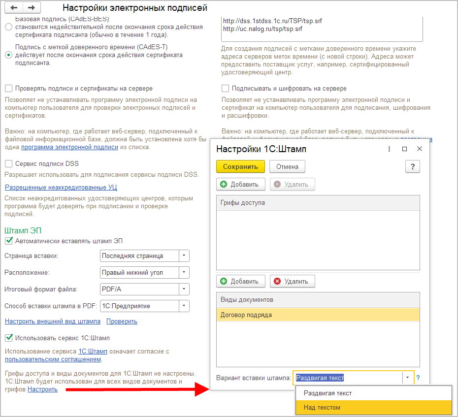 Кроме того, теперь сервис «1С:Штамп» можно использовать если Итоговый формат файла не только PDF/А, но и Оригинальный.