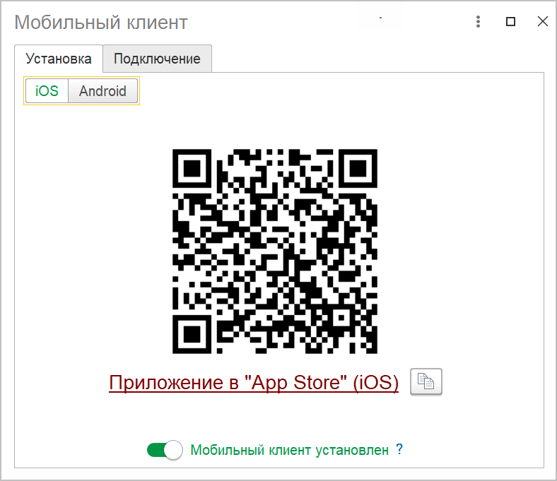 Если клиент уже был установлен, включите настройку Мобильный клиент установлен – в этом случае в следующий раз сразу откроется закладка Подключение.