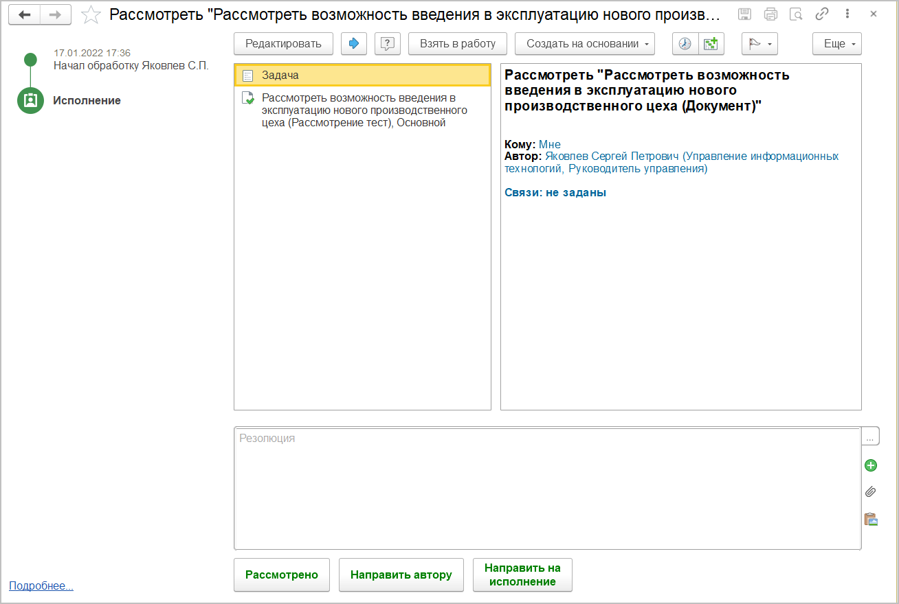 После записи документа будет установлена связь документа ЭДО и документа «1С:Документооборота», после этого будет доступно выполнение команд по ЭДО из карточки документа «1С:Документооборота».