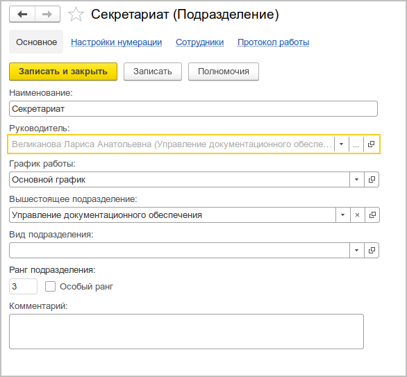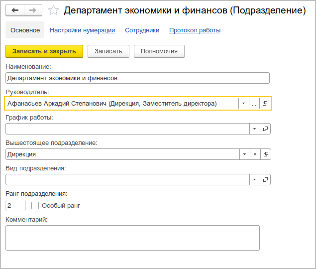 Теперь в большинстве случаев нет необходимости создавать дополнительных сотрудников при соответствующих подразделениях и назначать их руководителями. Например, у подразделения Департамент экономики и финансов руководителем может быть Заместитель директора, который входит в состав подразделения Дирекция.