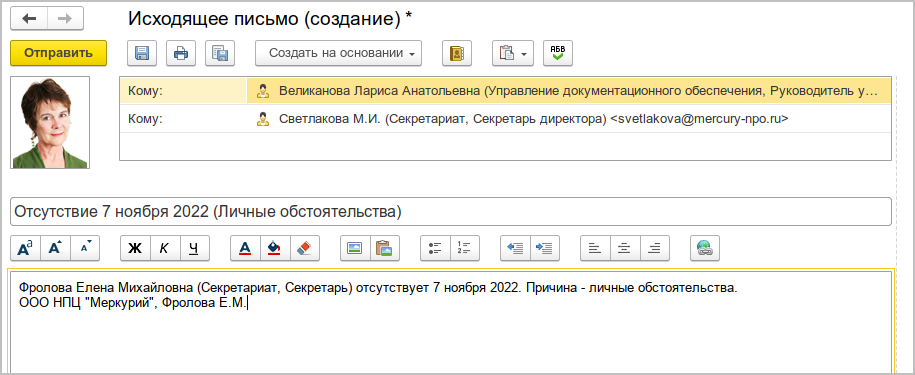 Возможность актуальна не только при ответе на такие письма из 1С:Документооборота, но и из других почтовых клиентов, например Outlook, Яндекс, Gmail и др.