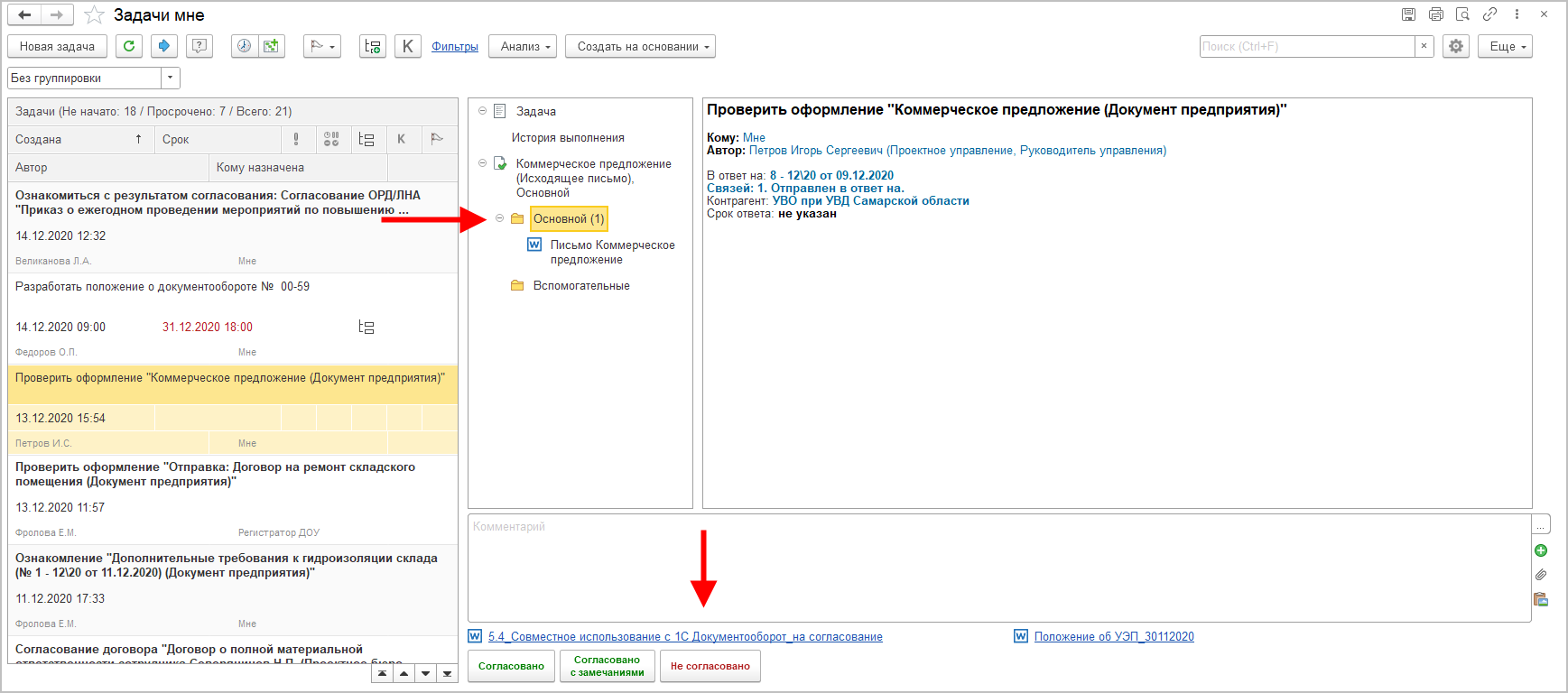В задаче согласования в режиме замечаний теперь отображаются дополнительные реквизиты, разумеется, если они настроены.