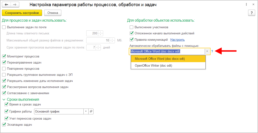 В новой версии программы проверка орфографии в письмах встроенной почты, карточках документов и шаблонах текста доступна не только с помощью MS Office, но и через OpenOffice. Возможность доступна только в тонком клиенте под управлением MS Windows.
