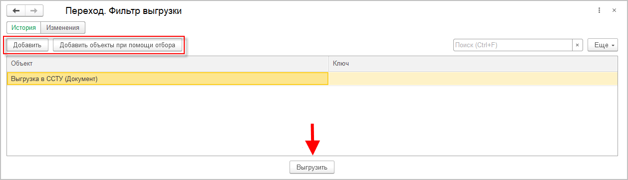 В открывшемся окне выполнить команду Добавить или Добавить объекты при помощи отбора и после их добавления – Выгрузить.